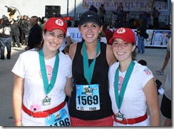 At first, I was worried that people wouldn’t “get” our costumes. I was totally wrong. From the moment we arrived at the start line, we had a ton of compliments! It was really neat! The Roller Derby Girls who started off the race with us and became cheerleaders on the sidelines REALLY loved our costumes. You could hear them after we passed saying “Aww cute!” Hah!